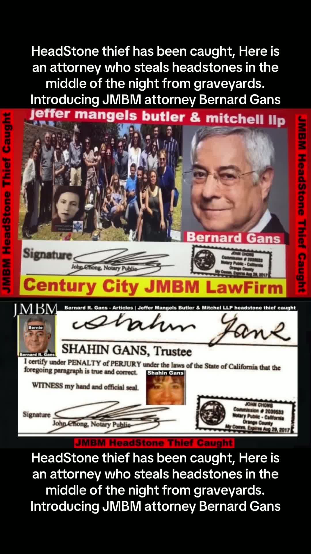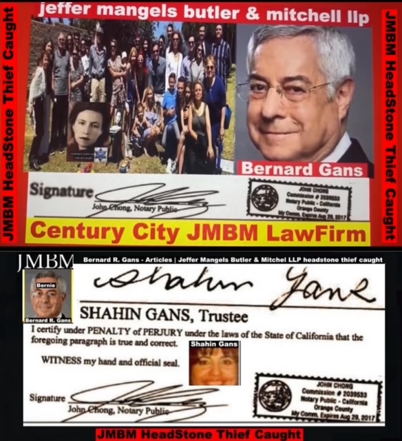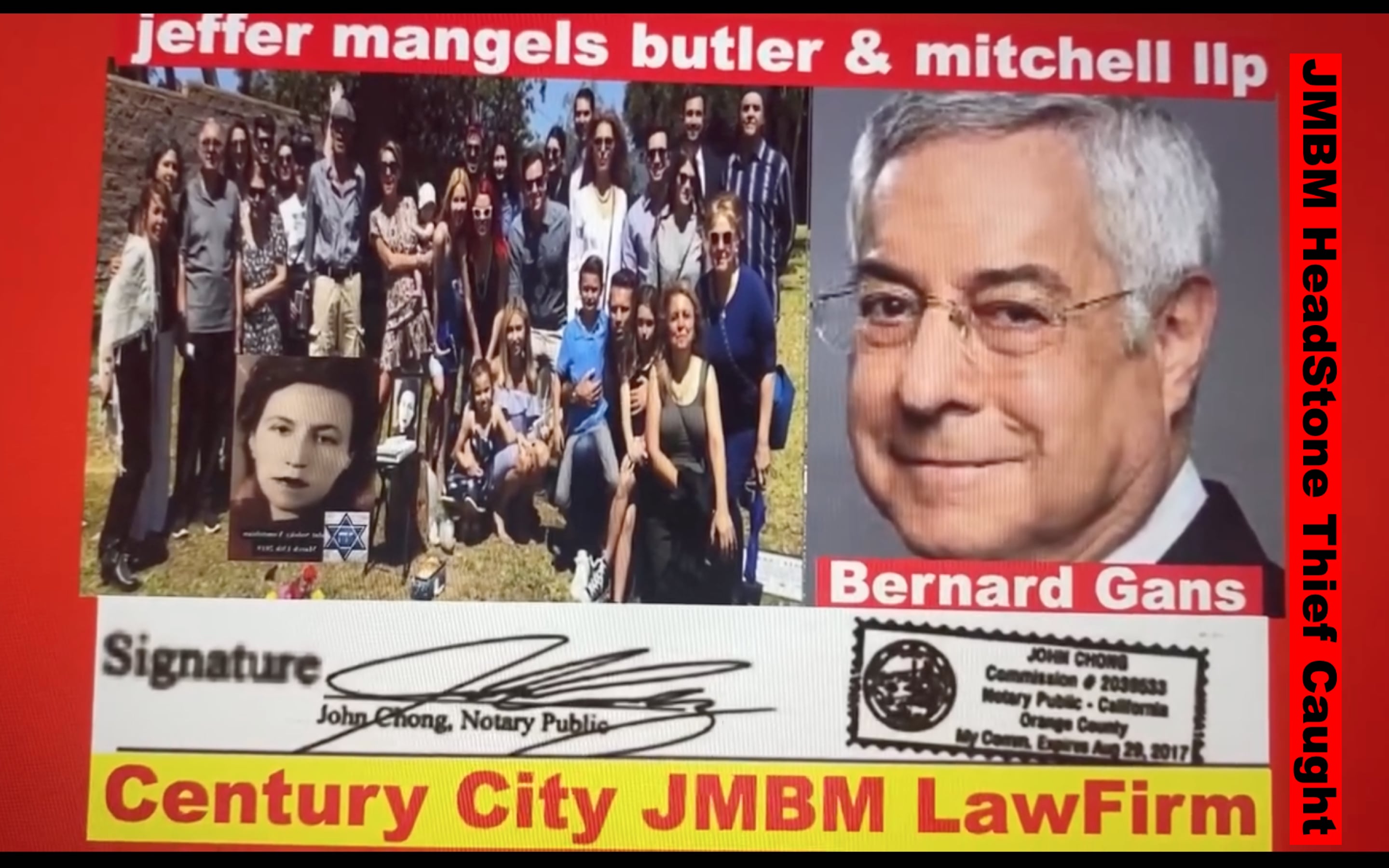 Century City Police 90067 Department JMBM attorney Thief Bernard R. Gans Jeffer Mangels Butler & Mitchel LLP JMBM attorney thief you have 24 hours to place the headstone or we are going to Century City Police department to report your crimes.