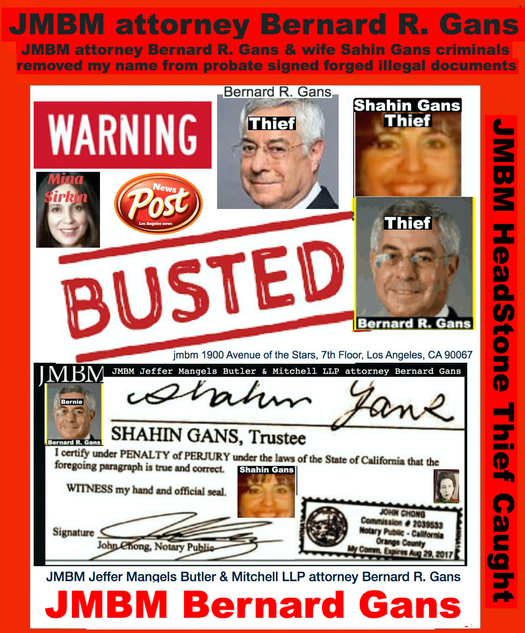 Luigi+Warning+JMBM+$1000000000+Lawsuit+Warning+Wanted+cheater+liar+thief+Jeffer+Mangels+Butler+Mitchell+Employee+partner+JMBM+JMBM an Anti Jewish attorney thief and a Criminal Bernard Gans Shahin Gans Century city thief jmbm busted partner attorney Bernard Gans engaging in criminal illegal unlawful acts Century city GMBM busted attorney Bernard Gans engaging in criminal acts forging illegal documents jmbm Bernard Thief. Gans - Articles | Jeffer Mangels Butler & Mitchel LLP Century City California Business Lawyers Jeffer Mangels Butler & Mitchell Attorneys LLP.